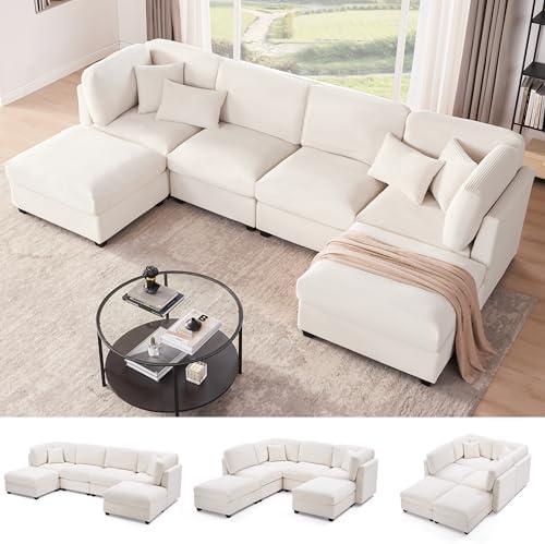 This exceptional couch boasts an expansive design, accommodating up to six people comfortably. Measuring a generous 140 inches, the flexible setup allows it to be arranged in various configurations, including U-shape or L-shape, making it a great fit for diverse living room layouts. The ottoman not only adds a stylish touch but also serves as a storage solution for blankets and other essentials. With high-density memory foam and premium corduroy fabric, it guarantees a plush, cozy lounging experience.