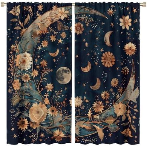 The vibrant and artistic design of these curtains features an abstract bohemian interpretation of forest florals and celestial elements, making them a delightful addition to any room. Crafted from durable polyester, they not only provide aesthetic appeal but also improve your living space by blocking out light and noise effectively. With a size of 84 inches in length and 42 inches in width for each panel, they fit a variety of window dimensions with ease. The rod pocket design ensures a hassle-free installation process, allowing you to hang them quickly.