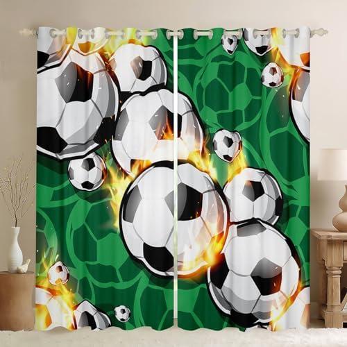 Soccer Green Ball Pattern Window Treatments for Kids and Sports Enthusiasts