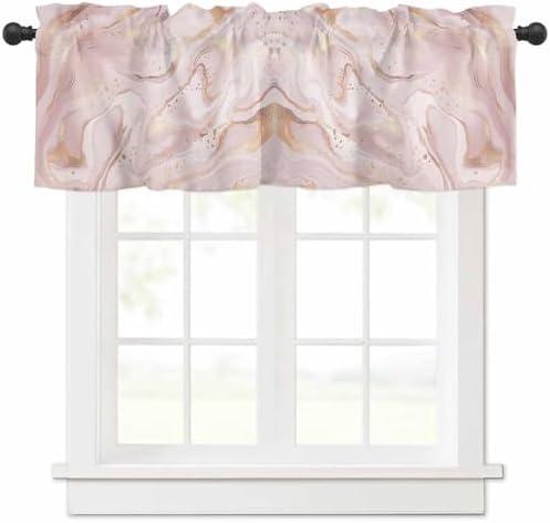 This beautifully crafted window treatment adds a vibrant pop of color and elegant design to any room. Measuring 54×18 inches, it features a soft polyester fabric that not only looks great with its modern pink marble and gold texture, but also allows for natural light to filter through while maintaining privacy. The exquisite workmanship ensures neat stitches and durability, making it a charming addition to kitchens, living rooms, bedrooms, and even bathrooms. The 3-inch rod pocket design allows for easy installation on standard or decorative curtain rods.