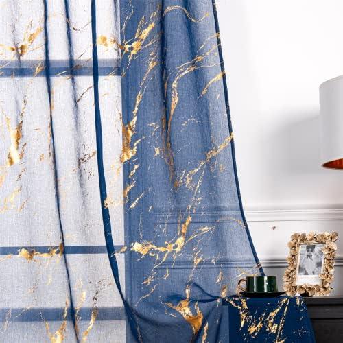 The sheer panels feature a luxurious gold foil metallic bronzing print that effortlessly combines modern aesthetics with classic artistic trends. Perfect for enhancing any room—be it a bedroom, living room, or dining area—these curtains add a touch of elegance while balancing light and privacy. With a convenient rod pocket construction designed for easy installation, they can fit standard curtain rods up to 3 inches in diameter. Each panel measures 52 inches wide by 84 inches long, making them a versatile choice for various window sizes.