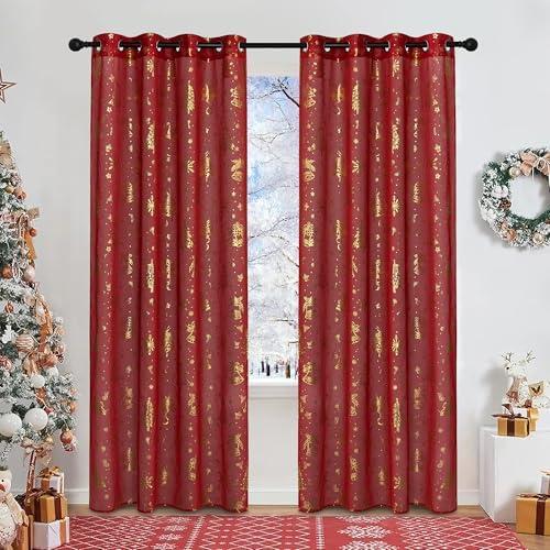 These vibrant red sheer curtains add a beautiful touch of holiday cheer to your living space while allowing light to gently filter through. The soft and airy fabric creates an inviting atmosphere, making it ideal for those cozy winter months. Designed to provide some level of privacy, these curtains allow you to enjoy natural light without feeling exposed. Their elegant gold print enhances the festive aesthetic, turning any ordinary window into a stylish focal point.