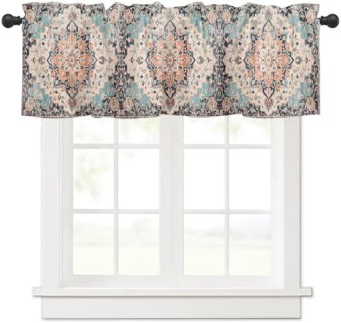 Featuring a striking geometric design, this window treatment adds a pop of color and style to any room. The high-quality polyester fabric ensures durability while also offering a soft and smooth touch, creating an inviting atmosphere in your kitchen, living room, or cafe. The easy-to-install rod pocket design allows for quick setup on most standard rods, making it a functional choice for covering the upper portion of windows. Additionally, its ability to filter light gently while maintaining a level of privacy enhances the overall ambiance of your space.