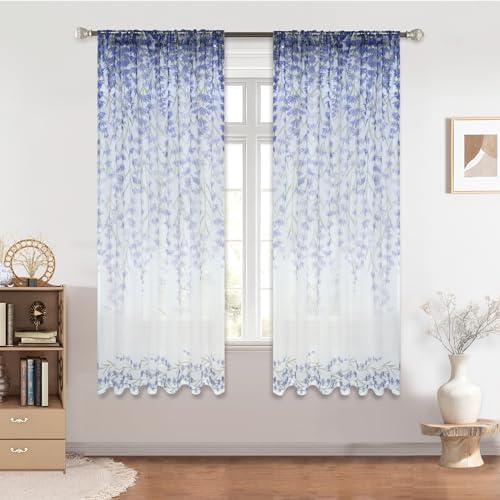 Elegant Purple Floral Sheer Curtain Panels with Versatile Design