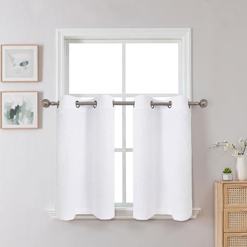 These decorative curtains come in a practical 2-piece set, providing an elegant touch to small windows while allowing soft light to filter through. Measuring 28″ wide by 36″ long, they are ideal for various spaces, including kitchens, bathrooms, and bedrooms. The unique geometric pattern adds visual interest, while the high twist yarn material ensures durability without compromising on aesthetics. The grommet design also facilitates easy installation, making it convenient to slide open or close as desired.