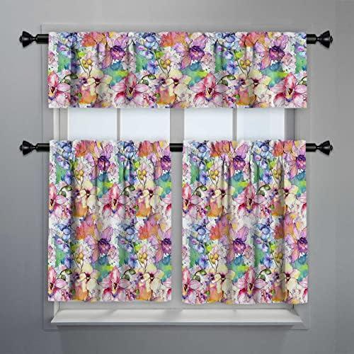 This elegant three-piece curtain set features a beautiful watercolor wildflower orchid design that seamlessly enhances the aesthetic of any kitchen or bedroom. The set is crafted from high-quality microfiber polyester, ensuring a soft texture and great durability. The valance measures 52 x 18 inches while the two tier panels are 26 x 36 inches, creating the perfect balance between style and function. These curtains not only add a modern and fresh touch but also effectively block out sunlight, providing comfort by controlling light exposure and indoor temperature.