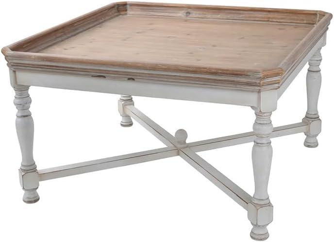 Retro Style Square Coffee Table,French Country Tray Table,Cocktail Table for Living Room,White