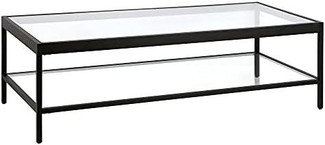 This contemporary coffee table features clean, minimalist lines and is constructed from a sturdy tempered glass top and a glass shelf. Perfectly suited for modern living rooms or studio apartments, the combination of blackened bronze and glass creates an elegant yet understated aesthetic. Measuring 54 inches long and 24 inches wide, it’s an excellent choice for displaying knick-knacks, magazines, and other decorative items while adding a sophisticated touch to your space. Its solid construction allows for a tabletop weight capacity of up to 40 lbs, offering both style and practicality for your living area.