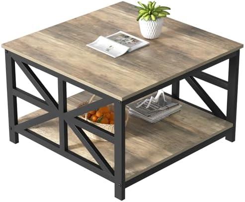 This elegantly designed coffee table is perfect for small spaces, measuring 27.6 x 27.6 x 17.7 inches, making it ideal for apartments or cozy living rooms. It features a rustic charm with its textured surface and sturdy metal frame, lending a minimalist aesthetic that complements various decor styles. The two-tier storage shelves provide ample space for books, magazines, or decorative items, adding functionality without sacrificing style. Easy to clean and durable, it’s constructed with a thick board to support regular use while keeping your living space looking chic.
