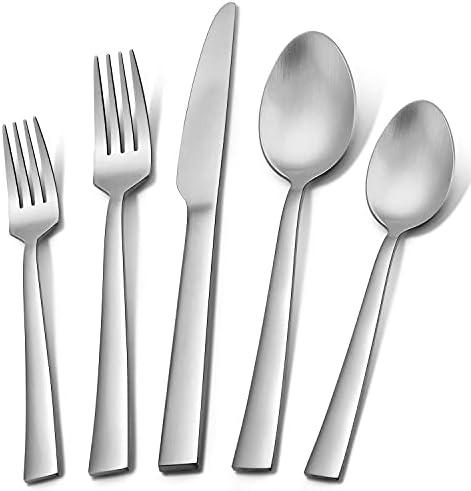 Crafted with care, this 40-piece flatware set provides everything needed for a complete dining experience for eight people, making it an excellent choice for family meals and dinner parties alike. The utensils are made from high-quality stainless steel, ensuring they resist rust and won’t impart any metallic taste during use. With a unique brushed finish and ergonomic square-edge handles, they offer both functionality and style, adding a modern touch to your table setting. The durability and solid structure mean this cutlery will withstand regular use without bending or feeling flimsy.