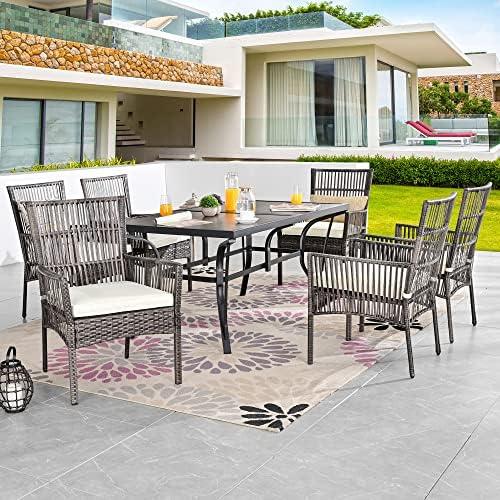 Stylish 7-Piece Outdoor Dining Furniture Set with Metal Table and Wicker Chairs