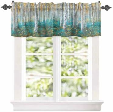 This charming window treatment features a beautiful birch tree forest oil painting that adds a touch of rustic elegance to any room. The valance is crafted from high-quality polyester fabric, ensuring softness and comfort while providing a stunning visual appeal with its vibrant yellow flowers and teal accents. Its rod pocket design allows for easy installation on most standard curtain rods, making it a versatile addition to your kitchen, bathroom, or bedroom. Moreover, it serves a practical purpose by filtering harsh sunlight, protecting furniture from fading, and enhancing your privacy without completely obstructing the view outside.