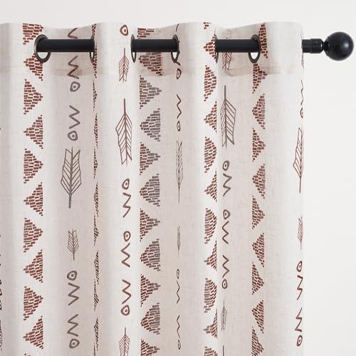 Transform your living space with these eye-catching curtains featuring a rustic charm that fits perfectly with a bohemian or farmhouse aesthetic. The rich rust geometric prints on soft beige linen add a stylish view to your windows in both bedrooms and living rooms. Designed for light filtering, these semi-sheer panels strike a balance between letting in natural light and maintaining your privacy. They are versatile enough to complement various home decor styles, making them a great addition to any room, including home offices.