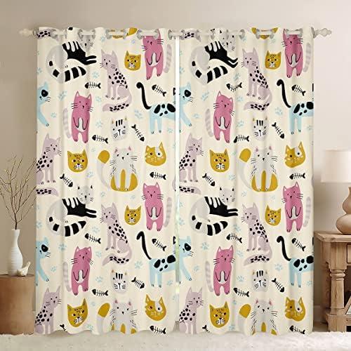 Fun, Kawaii Cat-Themed Blackout Curtains for Animal Lovers
