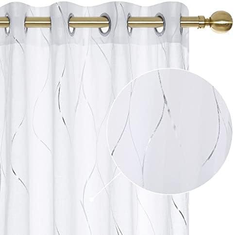 Deconovo Grommet Semi Sheer Curtains with Wave Pattern Printed, Silver, 52W x 95L