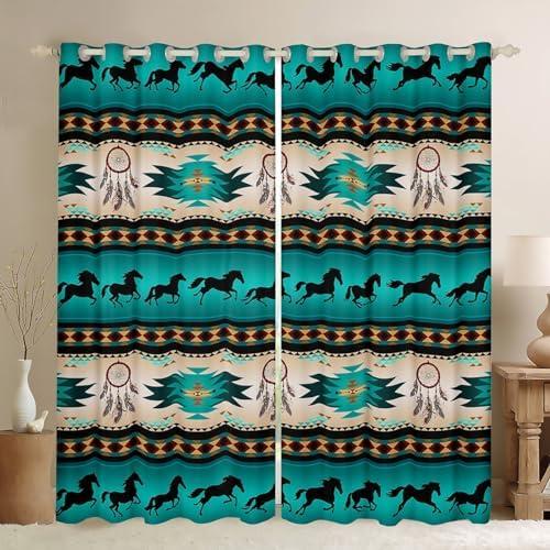 These eye-catching window drapes feature vibrant horse prints inspired by Aztec and African tribal elements, making them an excellent choice for anyone looking to add a touch of western charm to their home decor. The use of soft velvet fabric ensures a cozy feel while providing a hint of elegance. Measuring 42″Wx63″L, the set includes two panels that fit seamlessly into living rooms, bedrooms, or kids’ rooms. Their modern design complements a variety of settings, from casual to contemporary, and works well with different color schemes. With grommet construction, these curtains are easy to hang and slide smoothly on most rods.
