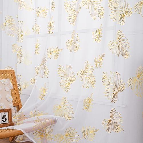 Elegant Sheer Panels with Gold Foil Print for Home Decor