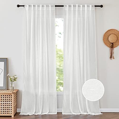 Experience a blend of elegance and functionality with these sheer linen curtains. Crafted from open weave flax linen blended fabric, they bring a rich aesthetic appeal to your living spaces. The elegant, semi-sheer design allows for the perfect balance of light and privacy, creating an airy atmosphere while letting beautiful diffused light filter into your rooms. Each panel measures 52 inches wide, boasting an impressive length of 102 inches, making them ideal for large windows or sliding glass doors. The versatile rod pocket and back tab loops provide different hanging options, adding to their charm.