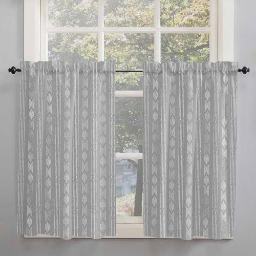 These curtains bring a stylish touch to various spaces, featuring a lovely geometric pattern in soothing grey that complements a farmhouse vintage aesthetic. Made from 100% premium polyester, they not only ensure that they remain non-fading but also provide a semi-sheer quality that filters light while offering privacy. The convenient rod pocket design allows for easy installation on most standard curtain rods, making them suitable for any room, from kitchens and cafes to bedrooms and living rooms. Their dimensions of 42 inches wide by 45 inches long make them perfect for shorter windows or to add a decorative layer above longer drapes.