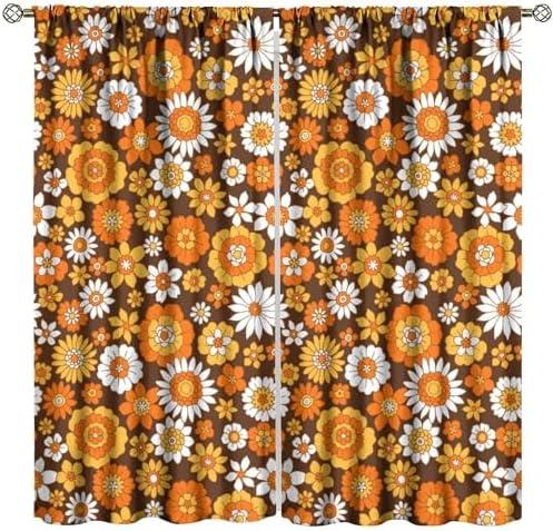 These eye-catching window drapes showcase a stunning blend of white and orange floral patterns that capture the essence of retro design while seamlessly fitting into contemporary home decor. Crafted from high-quality 100% polyester, they offer both style and utility, boasting nearly complete blackout capabilities which create a cool and comfortable living environment. Ideal for various spaces including the kitchen, bedroom, or living room, they can easily complement existing furniture and accessories, making them a versatile choice for any setting.