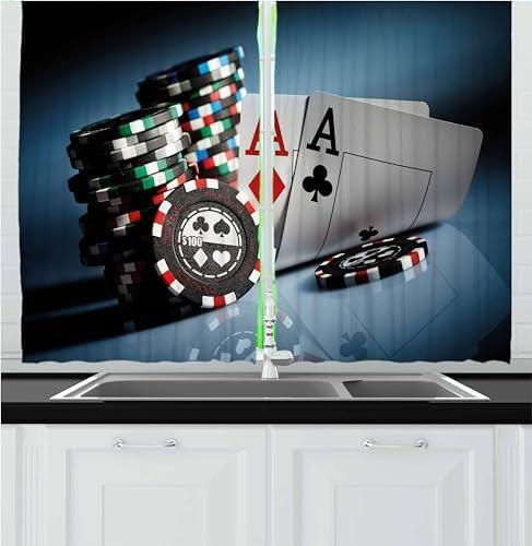 Transform your kitchen or cafe with vibrant window drapes featuring a unique gambling theme. Perfectly sized at 55″ x 36″, these curtains showcase an engaging design that features gambling chips, aces, and vibrant colors of blue and red. Made from a high-quality silky satin polyester blend, they add a stylish touch while also providing the functionality of privacy and light filtration. Not only are they ideal for kitchen windows, but they can also be used in smaller windows in bathrooms or bedrooms, making them a versatile choice for any part of your home. The impactful stitch design enhances the overall aesthetic, ensuring that your decor stands out.