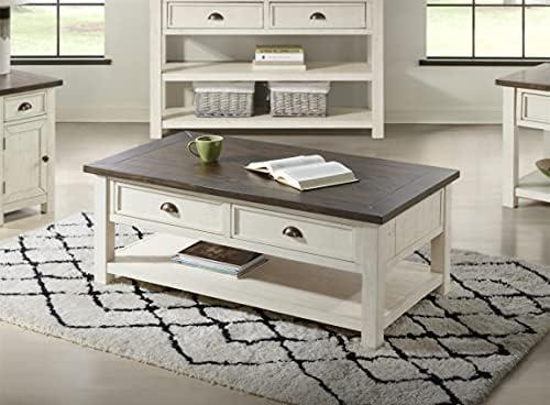 One of the standout features of this exquisite coffee table is its perfect blend of style and functionality. The Cream White finish with a contrasting Brown top not only enhances its visual appeal but also harmonizes beautifully with various decor styles. We appreciate the rustic charm brought by the Wormwood details and antique pewter hardware, which adds a touch of sophistication to our living space. Moreover, the spacious pull-through drawers serve as a fantastic storage solution, keeping our remotes, books, and games neatly tucked away, while the bottom shelf offers even more space for decorative items or additional storage.