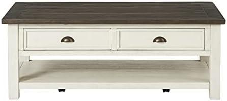 Our experience with this coffee table has been nothing short of delightful. The combination of the Cream White finish with the Brown top contributes to a stunning aesthetic that enhances the overall decor of our living space. The rustic charm is accentuated with wormwood details, and we appreciate how the framed design adds a classic touch. The spacious pull-through drawers offer functional storage for our miscellaneous items, helping to keep the area organized and looking tidy. The antique pewter hardware also adds a subtle elegance that complements the coastal theme beautifully.