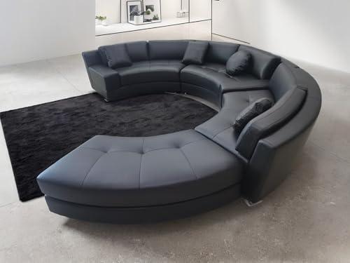 This elegant sectional features a semi-circular design and is available in a sleek black finish, making it a sophisticated addition to any living room. The set consists of a left sofa, right sofa, armless sofa, and an ottoman, all upholstered in high-quality top-grain leather. With its tufted seating cushions and wide armrests, it provides a luxurious seating experience that combines comfort and style. The cushions are removable, allowing for easy cleaning and maintenance, while the solid all-wood frame ensures durability and longevity. The addition of four throw pillows enhances both comfort and aesthetic appeal.