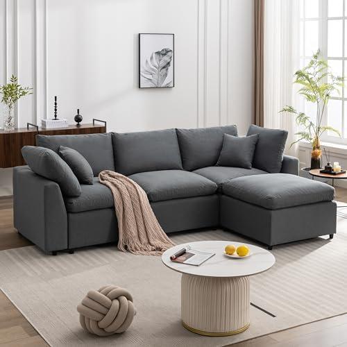 Modern L-Shaped Couch with Reversible Ottoman for Small Spaces