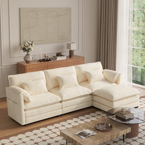 112” Modular Couch with Double Layer Cushions and Movable Ottoman