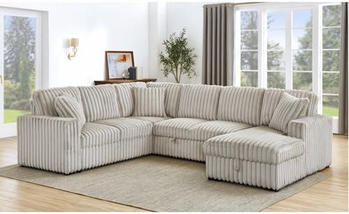 This oversized U-shaped sleeper sofa provides an ideal solution for both seating and sleeping needs in your living space. With its innovative design, the sofa effortlessly converts into a comfortable bed, making it perfect for accommodating guests or enjoying a relaxing movie night. Additionally, the storage chaise adds greater utility with a lift-up feature that reveals ample space for bedding or other personal items, enhancing your home’s organization.