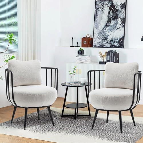 Experience both comfort and style with this pair of accent chairs, designed to elevate any room in your home. Upholstered with fluffy sherpa fabric, these chairs not only provide a soft touch but also add an elegant flair with their ivory color. The chairs feature a sturdy structure composed of solid metal and wood, ensuring durability and a weight capacity of up to 285 lbs. You’ll appreciate the ergonomic design, which includes a high backrest and plush cushions made of high-density elastic sponge, offering excellent support for extended seating. Adding to their versatility, these chairs seamlessly match various decor styles, making them perfect for a living room, bedroom, or even an office.