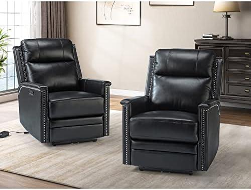 The electric recliner chairs are crafted from high-quality genuine leather, providing a smooth and durable surface that is both comfortable and easy to maintain. With generous padding in the head, back, arms, and lower back, these recliners offer exceptional support and comfort, effectively relieving body pressure. The inlaid nailhead trim adds a touch of sophistication, making them suitable for various settings, from home theaters to cozy living rooms. A unique feature includes a USB charging port, allowing users to charge their devices comfortably while enjoying relaxation. Built for stability, the sturdy metal base ensures safety and support, with a load-bearing capacity of up to 250 pounds.
