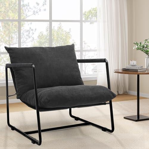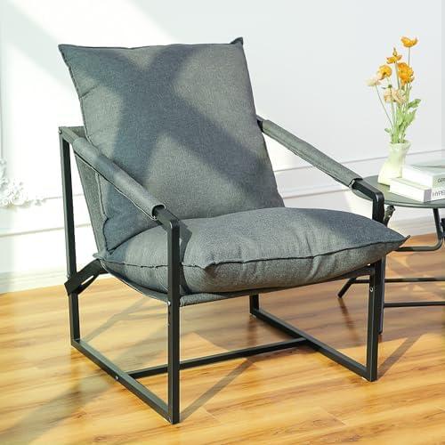 YITAHOME Sling Accent ⁣Chair, Metal Framed Armchair with Soft ‍Cushion, Minimalist​ Style Chair for⁢ Indoors, ‍Accent Comfy Chair for Lounge, Indoor Linen Sling Chair for Living Room Bedroom Office (Grey)