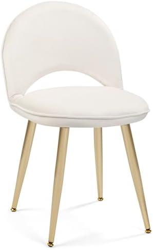 Vanity Chair with Adjustable Backrest ‌Vanity Chair with Back Multifunction Chair ⁤for Dressing Home Office Kitchen ‌Dinning Room and ⁢Living Room, Armless Chair with Back (Velvet ⁣White)