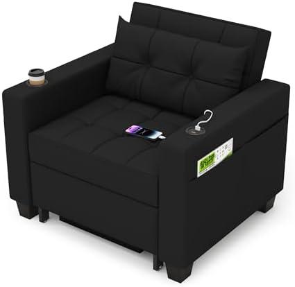 This versatile chair offers an adjustable backrest⁢ with three reclining ⁤angles ⁣(110°, ​140°, 180°), ‍perfect for accommodating‌ various activities‌ such‌ as reading, lounging, or ​napping. Its⁣ premium construction includes ⁢a high-quality steel frame that supports up to 330 lbs, while the ‍faux‍ leather material and high-density foam ensure comfort. Additionally, the built-in ​cup holders and⁤ side pockets add convenience, making it an excellent choice⁢ for small spaces like dorm rooms or⁤ apartments. With easy conversion to a sleeper ‍bed, this chair effortlessly transforms your living area​ into a ⁣cozy guest ​space ⁤when needed.