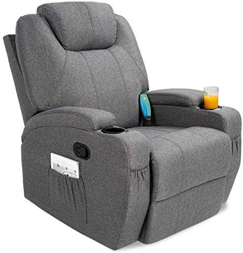 Best ⁣Choice Products Executive Linen‍ Fabric Swivel Electric Massage Recliner Chair w/Remote Control, 5 Heat & Vibration Modes, 2 ⁣Cup Holders, ​4‌ Pockets – Gray
