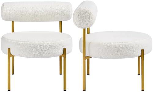 Topeakmart ⁤Modern Vanity Chair, Boucle Fabric Accent Chair with Gold Metal Legs for​ Living Room Makeup Room, White