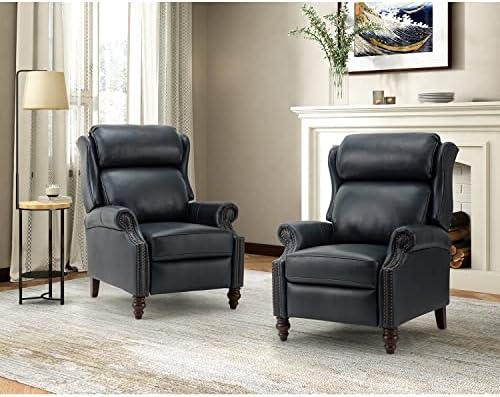 HULALA HOME Genuine Leather Set of 2 Manual ​Recliner,Push Back Recliner Chair with Solid Wood Legs, Wingback Recliner with ‌Nailhead Trim,Armchair LazyBoy Sofa for Living Room,Home Theater,Navy
