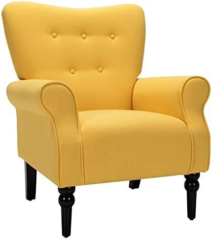 Giantex Fabric Accent Chair, ⁢Comfy Cute Living​ Room Chair w/Arm, ⁣Rubber Wood Legs,‍ Adjustable Foot Pads, Single Sofa Chair‌ w/Thickened Cushion, Bedroom Chair for Reading,⁤ Yellow