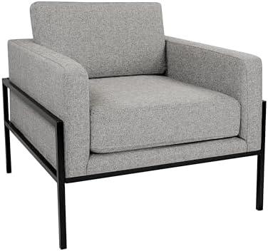 This modern accent‌ chair is‌ designed to ‌enhance any ⁤living ​area or bedroom with its sustainable gray woven fabric. The spacious seat ‌dimensions (22.8″W x 26.4″D x ⁣18.1″H) ⁣provide ample room for‍ relaxation, making it⁤ an excellent choice ​as​ a⁢ reading chair or occasional seating solution​ in various spaces. The combination of wood and metal construction offers durability and stability, while the sleek design adds a contemporary flair to your home décor. Furthermore, the chair’s weight capacity of up to 300 pounds makes it a suitable ‌option for a​ wide range of users, ensuring both comfort ‌and functionality.
