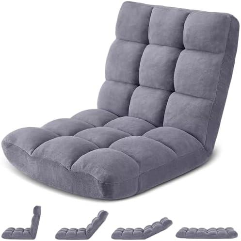 This adjustable floor chair offers a remarkable combination of comfort and functionality, featuring a cushioned design made from breathable cotton and soft flannel, making it suitable for both kids and adults. Users can enjoy 14 different reclining positions, allowing them to find the perfect angle for reading, gaming, or meditating. Its ergonomic design caters to various preferences, and the 6-inch thick recycled cotton sponge provides excellent support for extended relaxation. Additionally, the stylish look of the chair adds a decorative touch to any living space, enhancing both utility and aesthetic appeal.