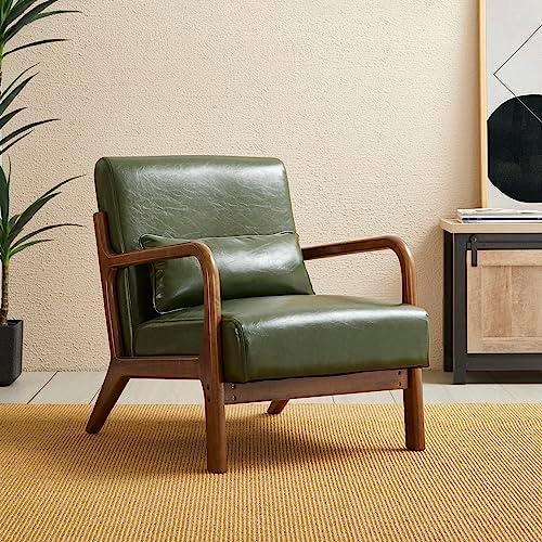 Elevate your home decor with this eye-catching accent armchair that features a stunning hunter green color and a vintage aesthetic. Designed with a sturdy walnut rubberwood frame, it not only enhances the modern appeal of your space but also ensures durability—capable of supporting users weighing up to 330 lbs. Measuring 25.75”L x 33.75”W x 30.75”H with a seat height of 16.25”, it offers a comfortable seating experience for extended reading sessions or sipping coffee. The PU leather upholstery adds a touch of luxury while remaining easy to clean and maintain.