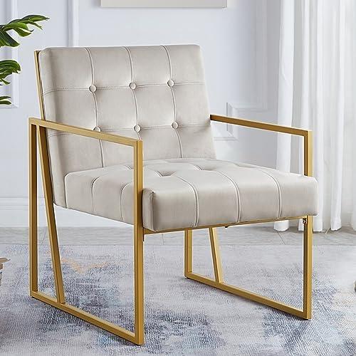 Chic Velvet Button Tufted Accent Chair with Golden Metal Base
