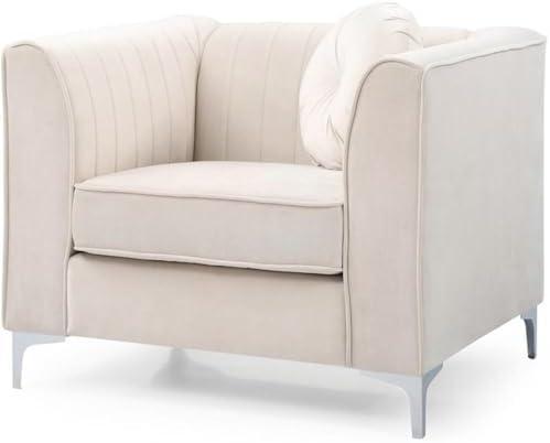 This elegant seating option features a soft velvet micro suede cover in a beautiful ivory hue, which not only enhances the aesthetic of your space but also provides a luxurious feel. The intricate channel tufting adds depth and sophistication, making it a captivating statement piece in any room. With the added touch of chrome legs, it effortlessly combines modern design elements with classic comfort. The knockdown design is a thoughtful feature, ensuring that it can be easily transported and delivered without any hassle.