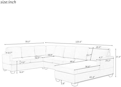 Our experience with the sectional living room sofa has been nothing short of delightful. The sleek design merges seamlessly with our decor, adding a modern touch without being overbearing. The overall dimensions, measuring 125.6 inches in length and 78.3 inches in width, provide an expansive seating arrangement that comfortably accommodates six people. We particularly appreciate the extra-wide chaise lounge, which allows us to stretch out and relax. The cushions, filled with high-density foam, combined with the sturdy birch wood frame, offer excellent support while remaining incredibly cozy for long lounging sessions.