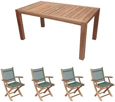This premium outdoor furniture set is designed for comfortable and stylish dining experiences around your patio or garden. Featuring a 63-inch rectangular table made of high-quality teak wood, it boasts natural resistance to the elements thanks to its high oil content. The table is expertly constructed with kiln-dried wood and robust mortise and tenon joints, ensuring durability and stability over time. The addition of a 2-inch umbrella hole makes it easy to enjoy shade on sunny days, while the clean, elegant lines of the design enhance the overall aesthetic of your outdoor space. Accompanying the table, the four Sailmate Folding Arm Chairs provide not only style but also exceptional comfort with their sling seats and backs.
