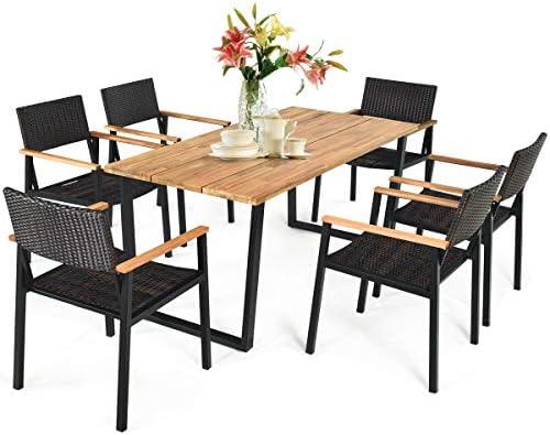 Pros and cons provide a clear understanding of the set’s quality and suitability for your space. Pros include its luxurious design, exceptional comfort from the reclining chairs, and the longevity offered by the premium materials. On the flip side, cons may involve the initial investment cost, which could be higher than other outdoor options, and potential maintenance required to preserve the wood’s natural beauty. Nonetheless, this dining set is a solid choice for enhancing your patio experience, ensuring stylish meals and relaxation in the great outdoors.