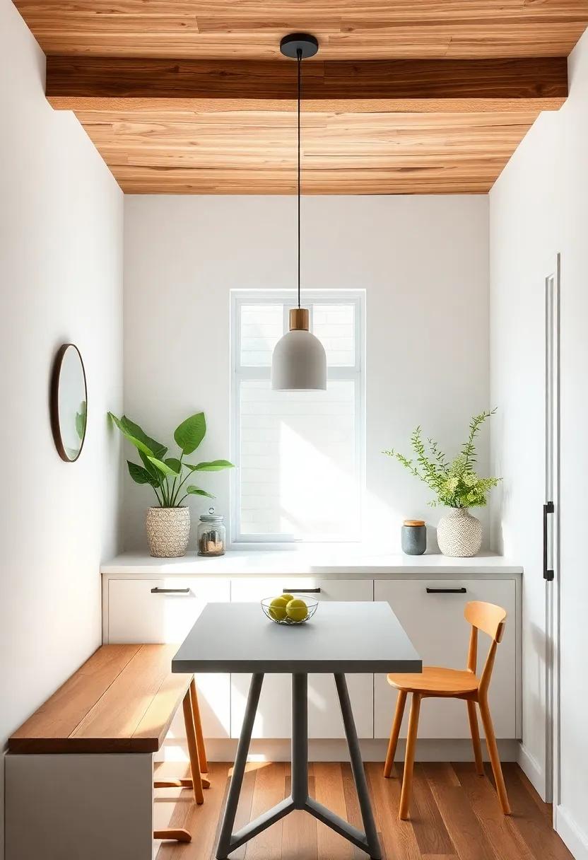 Incorporating natural elements into your small kitchen can substantially enhance its appeal, creating a fresh and inviting atmosphere perfect for a charming breakfast nook. By infusing organic materials and colors, you can cultivate a space that feels airy and coherent.Consider introducing elements such as wooden accents, which can be achieved through open shelving or a rustic table. Adding plants not only brings life to the décor but also improves air quality, making your mornings more refreshing. Pair these with natural light sources like window treatments that allow sunshine to flood your space, enhancing the warm, cozy vibe.