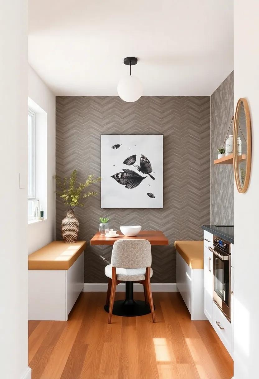 To elevate the atmosphere of your small kitchen, consider incorporating wall treatments that inject both personality and warmth. One effective method is to use textured wallpaper that resembles natural materials such as wood or stone. This not only adds dimension to the walls but also creates a cozy backdrop for your breakfast nook. Choose patterns that are subtle yet sophisticated,allowing them to harmonize with your existing decor while making a bold statement. Additionally, a fresh coat of paint in a soft pastel or warm neutral can work wonders, making the space feel more expansive and inviting.